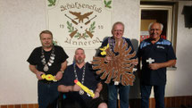 Die Würdenträger 2025 (v.l.n.r.): 1. Ritter Michael Hahn, König Hugo Mulch, 2. Ritter Leon Klein und Jugendkönig Torin Watt.